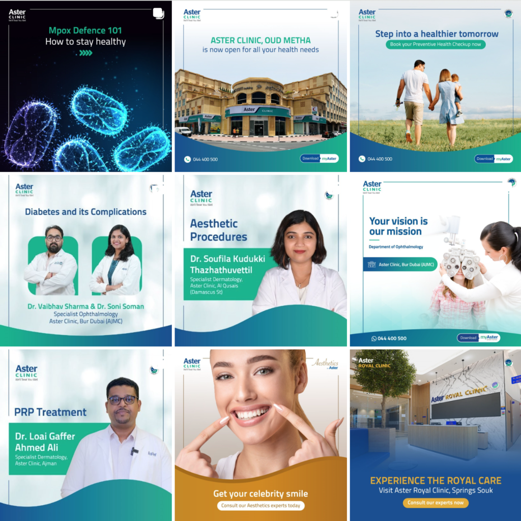 This project was about building stronger connections with patients through thoughtful digital outreach. By creating engaging social media content and impactful email campaigns, Aster’s communication channels became a trusted source of information, fostering a sense of care and accessibility even before patients visited the clinic.